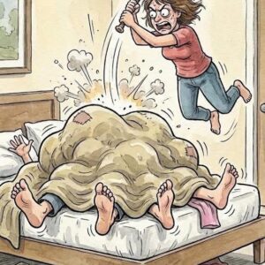 Wife comes home late at night and quietly opens the door to her bedroom. From under the blanket she notices four legs instead of two! She reaches…