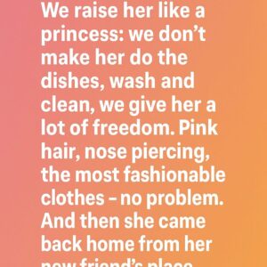 Our daughter is 13. We raise her like a princess: we don’t make her do the dishes, wash and clean, and we give her a lot of…