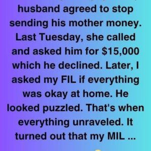 When we got engaged, my husband agreed to stop sending his mother money. Last Tuesday, she called and asked him for $15,000 which he declined. Later, I…
