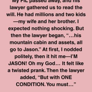 My father-in-law passed away, and his lawyer gathered us to read the will. He had millions and two kids—my wife, Rina, and her brother, Orson. I expected…