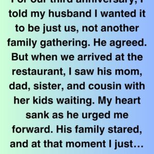 our third anniversary, I told my husband I wanted it to be just us, not another family gathering. He agreed. But when we arrived at the restaurant,…