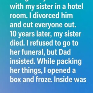 Ten years ago, my life collapsed in a single moment. I walked into a hotel room and found my husband and my sister together. In my shock…