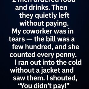 2 men ordered food and drinks. Then they quietly left without paying. My coworker was in tears — the bill was a few hundred, and she counted…