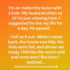 I’m on maternity leave with two kids. My husband often said I was “just relaxing at home,” as though my days were simple. One evening, after yet…
