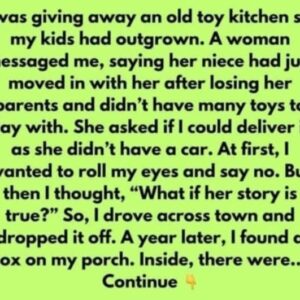 A year later, I found a box on my porch. Inside, there were photos of the little girl playing with the kitchen set, her face lit up…