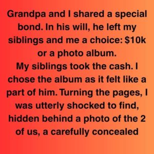 Grandpa and I shared a special bond. In his will, he left my siblings and me a choice: $10k or a photo album. My siblings took the…