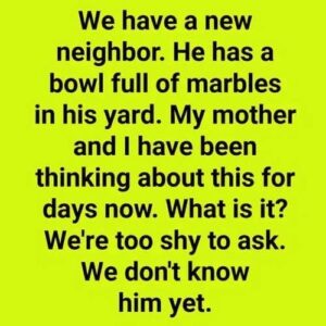 Our new neighbor had a bowl of marbles in his yard, and my mother and I couldn’t stop wondering why. We were too shy to ask. His…