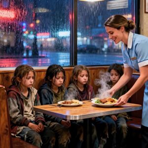 On a cold, rain-soaked night in a quiet town where nothing much ever happened, Sarah Mitchell was just trying to finish another long shift at the diner….