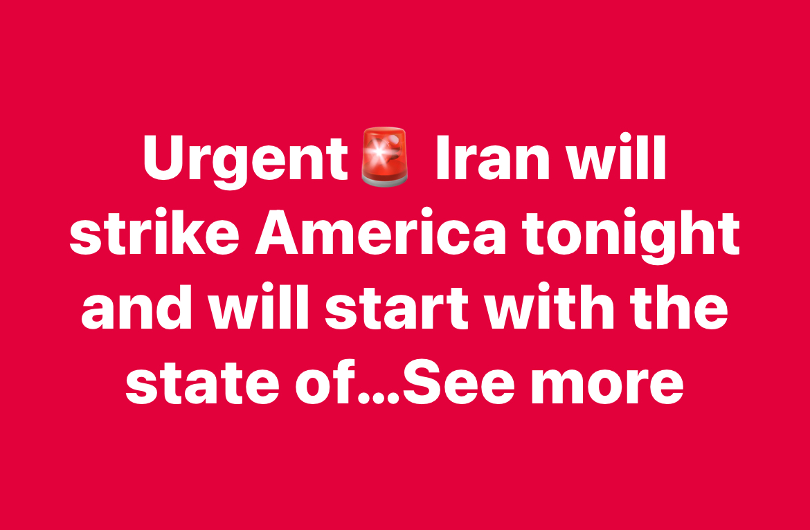 Urgent🚨 Iran will strike America tonight and will start with the state of…See more