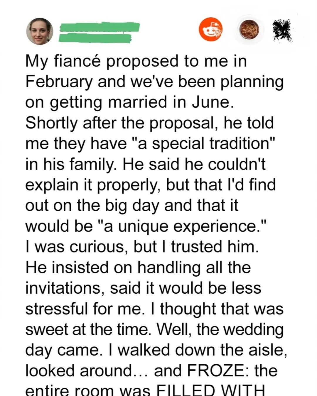 Hannah thought her wedding day would be magical—until she stepped into a chapel full of only men. Her fiancé, Luke, had kept details vague, calling it a “special family tradition.” When she asked where her mom and sister were, she was told the women had been sent to a separate location. Shocked and betrayed, Hannah stood frozen at the altar, heart pounding.