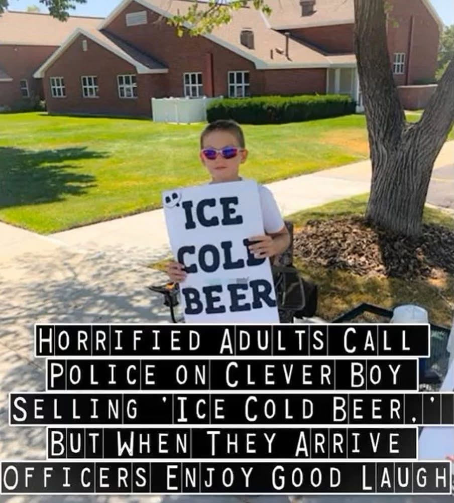 Seth, who is only 11 years old, had the police called on him by his neighbors after they saw his sign that read “Ice Cold Beer.” But honestly, his idea was quite clever!