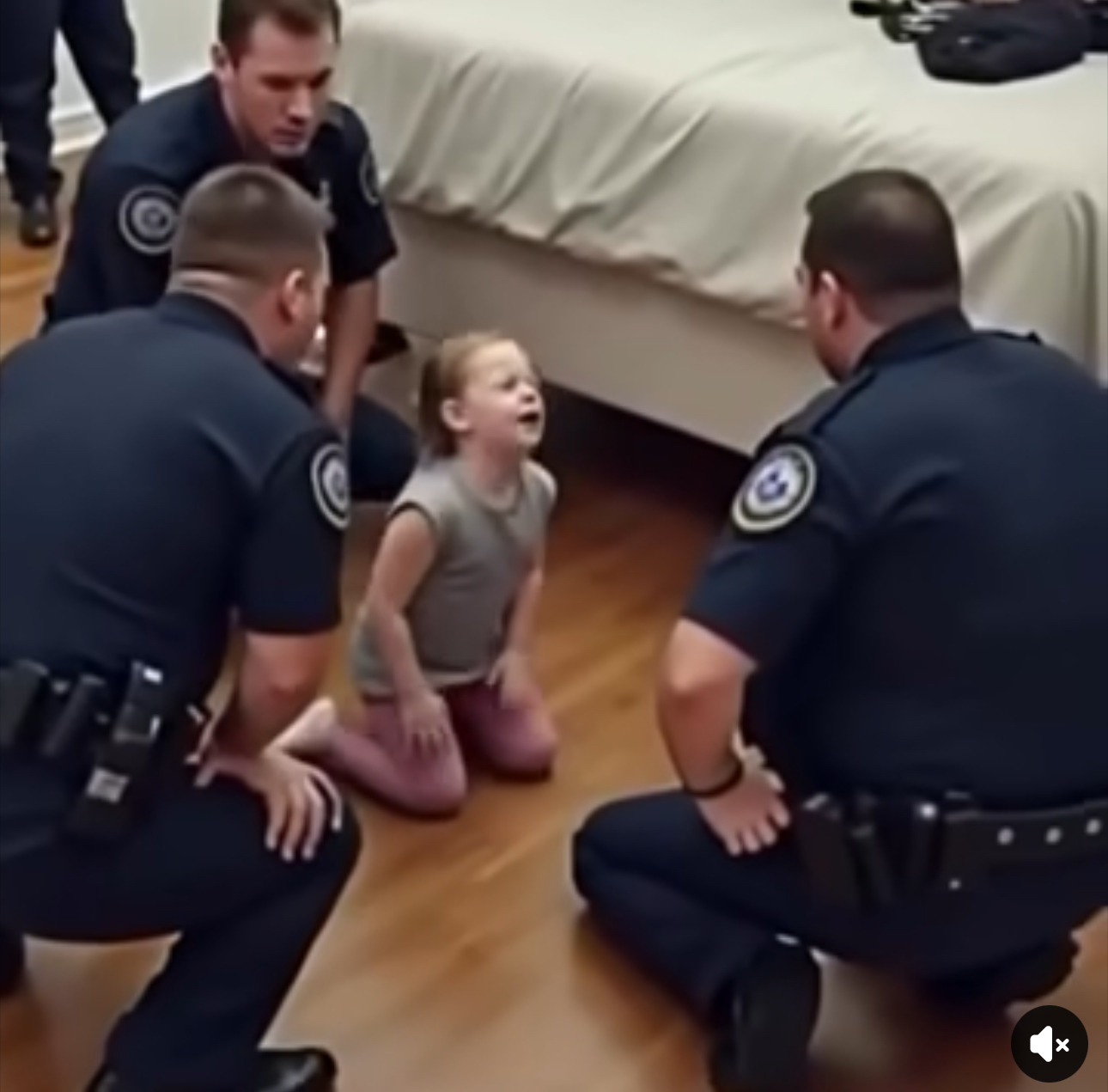 The officers knelt beside her bed and peeked underneath. All they saw were a few dusty toys and a forgotten sock. One officer chuckled and reassured Mia, “There’s nothing here, sweetheart. Just a few old toys.”