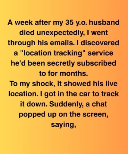 My fingers froze on the wheel. The message blinked back at me from the dashboard screen, like something out of a bad thriller. I’d only opened the tracking app out of confused curiosity. The last seven days had been a fog—funeral plans, casseroles from neighbors, sobbing phone calls. I hadn’t had time to cry properly.