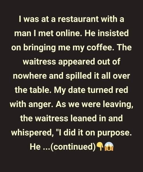 I was at a restaurant with a man I had met online. At first, he seemed charming—well-dressed, polite, even insistent on bringing me my coffee himself. But something about the way he watched me made me uneasy, though I tried to brush it off as first-date nerves. A waitress appeared suddenly, balancing a tray. As…