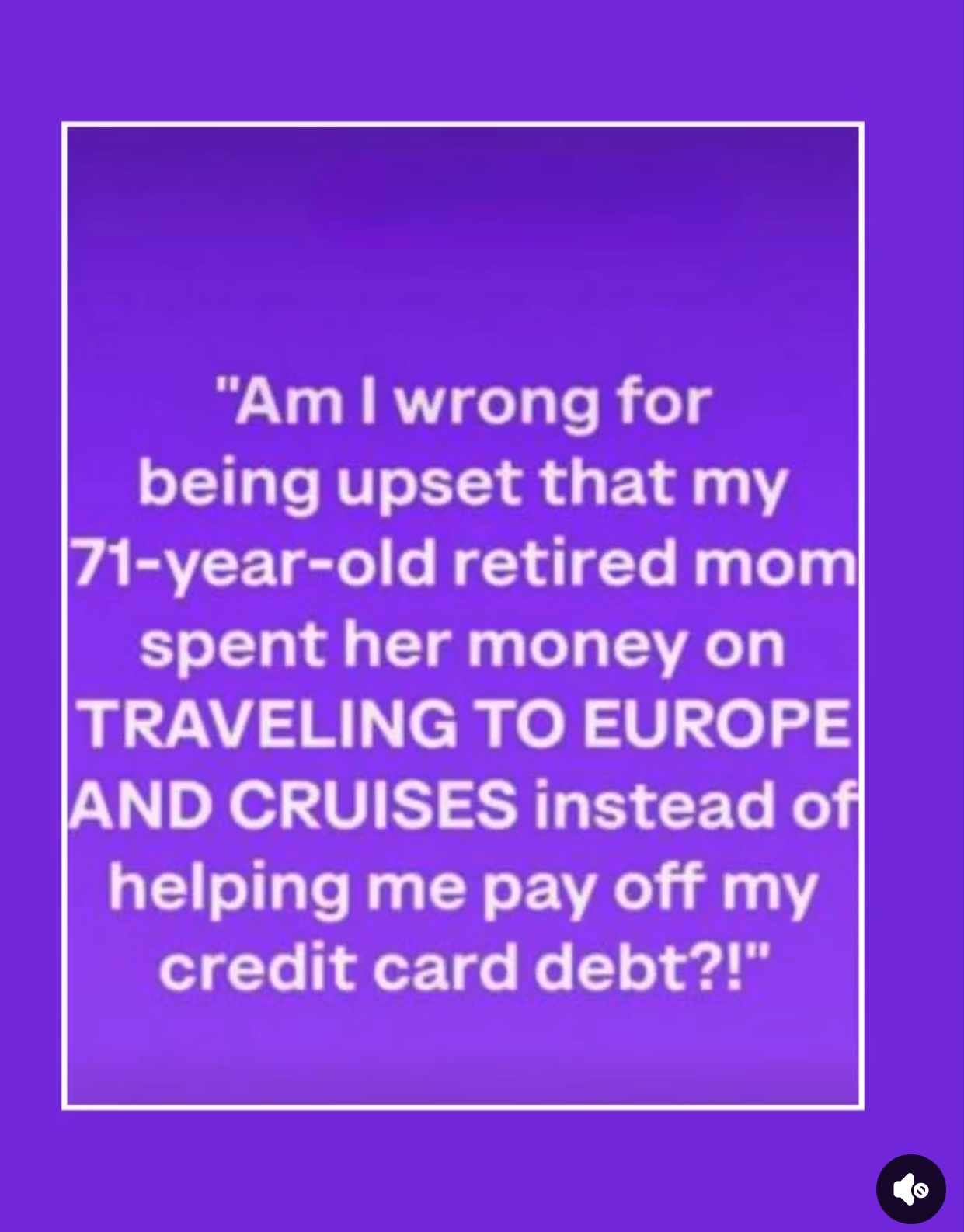 In today’s world of soaring expenses, financial conflicts within families are becoming common. A 71-year-old retired mother recently chose to spend her savings on European travel and cruises rather than paying off her adult child’s credit card debt. This decision has sparked heated debate.