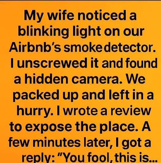 We had been excited about our little getaway. My wife had spent hours scrolling through Airbnb listings, finding us a cozy cabin with “rustic charm” in the countryside. It seemed perfect — quiet, peaceful, and just far enough away from the noise of everyday life.On the first night, while I was unpacking our bags, my wife froze.“There’s a light blinking up there,” she whispered, pointing at the smoke detector.