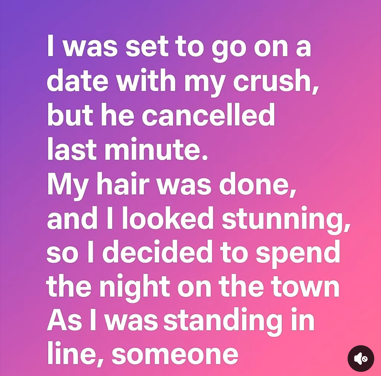I was set to go on a date with my crush, but he cancelled last minute. My hair was freshly styled, my dress chosen with care, and I felt stunning. At first, disappointment stung, but then I thought — why waste the night? I decided to go out anyway, determined to enjoy myself. As I…