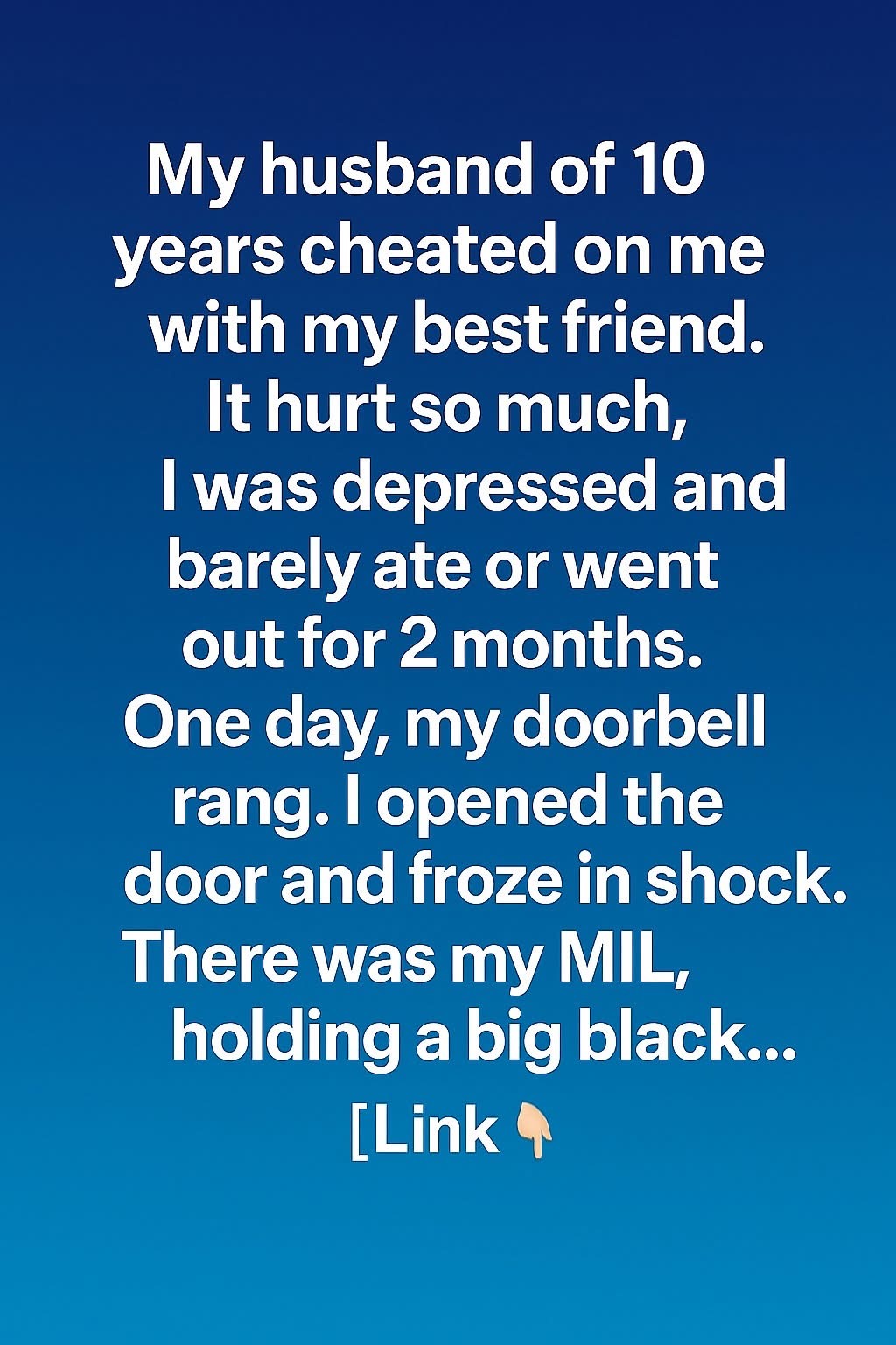 My husband of 10 years cheated on me with my best friend. The betrayal cut so deeply that I could hardly function. For two months, I barely ate, rarely left the house, and felt like the walls were closing in around me. Then, one afternoon, the doorbell rang. When I opened it, I froze. My…