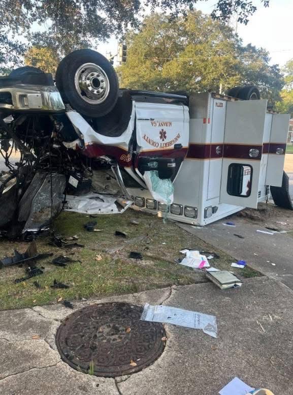 A Dougherty County EMS ambulance rolled over in the collision just after 7 a.m. at the corner of Pine Avenue and Monroe Street.According to Dougherty County EMS, three personnel and two patients were inside the ambulance at the time of the crash. The newborn was one of the patients.
