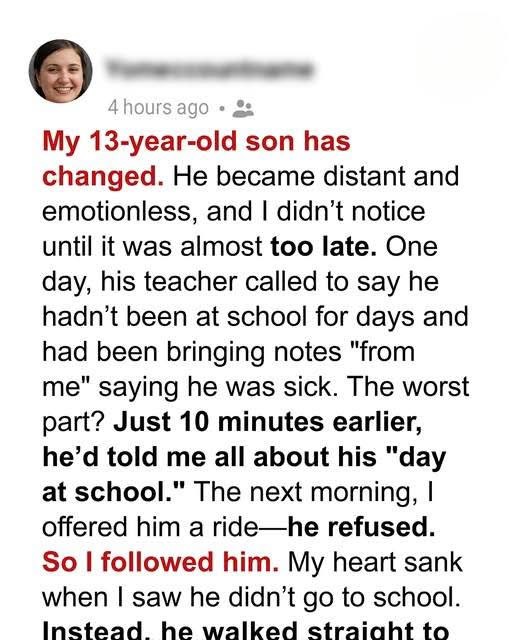 I thought everything was fine when my 13-year-old son, Caleb, came home beaming, a fistful of candy from his aunt Abby. But later that evening, his teacher called and shattered that illusion—Caleb hadn’t been to school. My heart sank. Who wrote the fake sick notes? And why was Abby helping him keep secrets?
