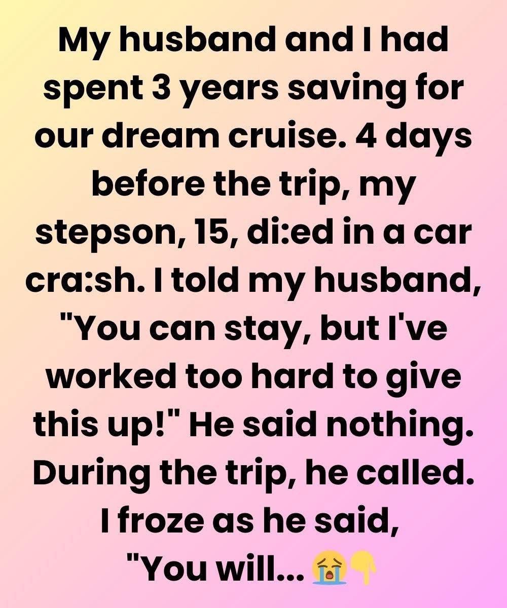 Our reader recounted her tragic decision to embark on the dream trip she and her husband had been saving for,