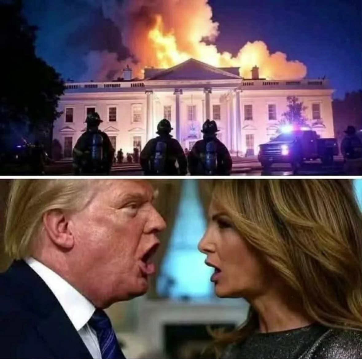 In a surreal and chaotic scene that has gripped the nation, the White House was consumed by a massive fire earlier today, with thick black smoke billowing