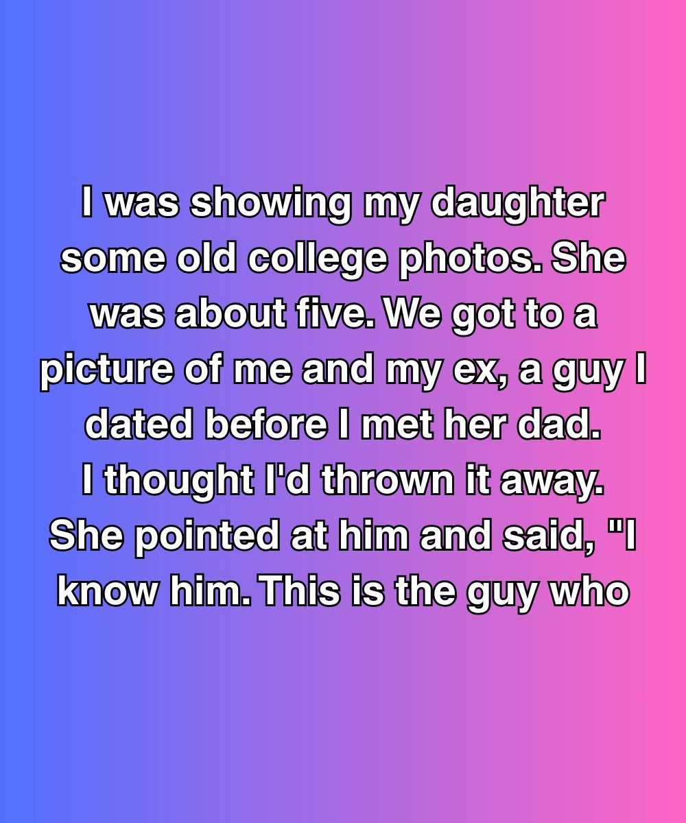 I was showing my daughter some old college photos. She was about five. We got to a picture of me and my ex, a guy I dated before I met her dad.