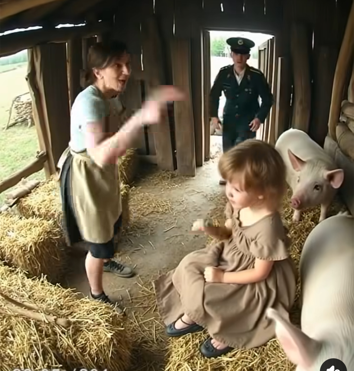 Suddenly, a child’s cries pierced the quiet afternoon, coming from the pigsty. Tomás’ pace quickened, heart pounding. Military instincts kicked in as he rounded the corner.