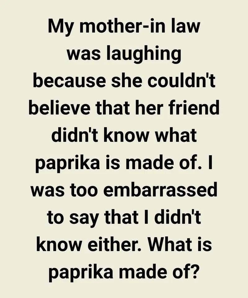 My mother-in-law was laughing because she couldn’t believe that her friend didn’t know what paprika is made of.