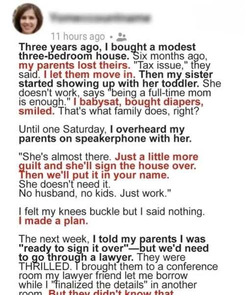 Their voices filled the room. Their laughter. Their plan. My mother’s snide comment about my ‘useless single life.’ My sister asking if she could “put her name on the utility bills now.”