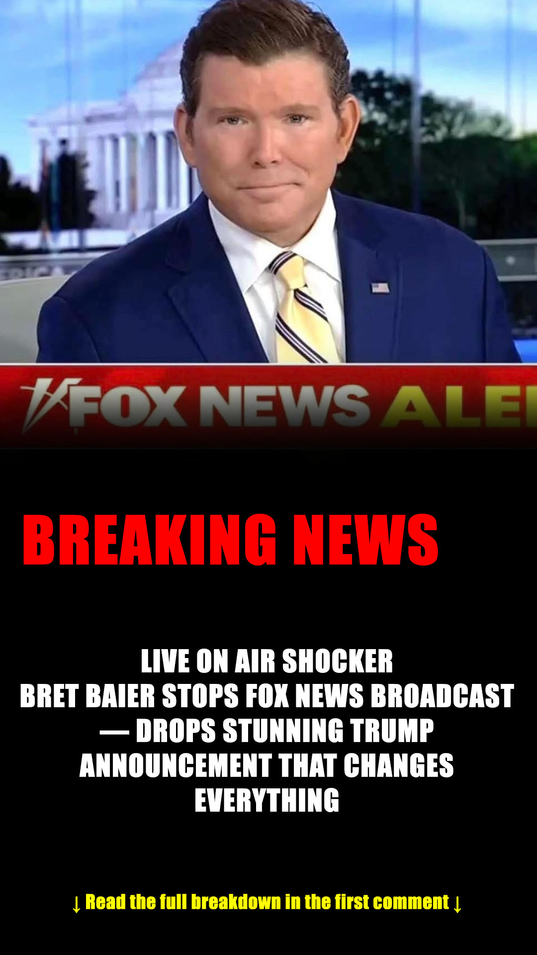 The nation was left stunned as Fox News anchor Bret Baier halted his live broadcast to deliver a direct message from President Donald Trump just moments after the assassination of conservative activist Charlie Kirk. Baier, visibly shaken, told viewers that Trump had personally called him before the show to share a statement that he could read on air.