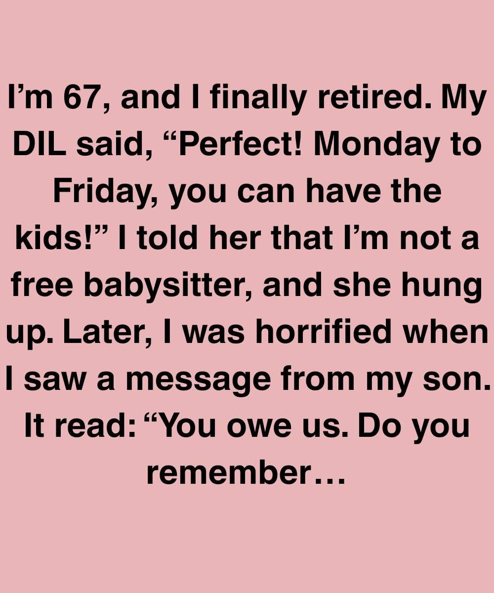 I’m not a free babysitter,” I said lightly, laughing a little, but her face dropped instantly.
