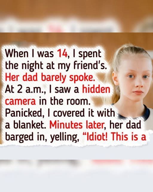 When I was 14, I spent the night at my friend’s. Her dad barely spoke. At 2 a.m., I saw a hidden camera in the room. Panicked, I covered it with a blanket. Minutes later, her dad barged in, yelling, “Idiot! This is a…”