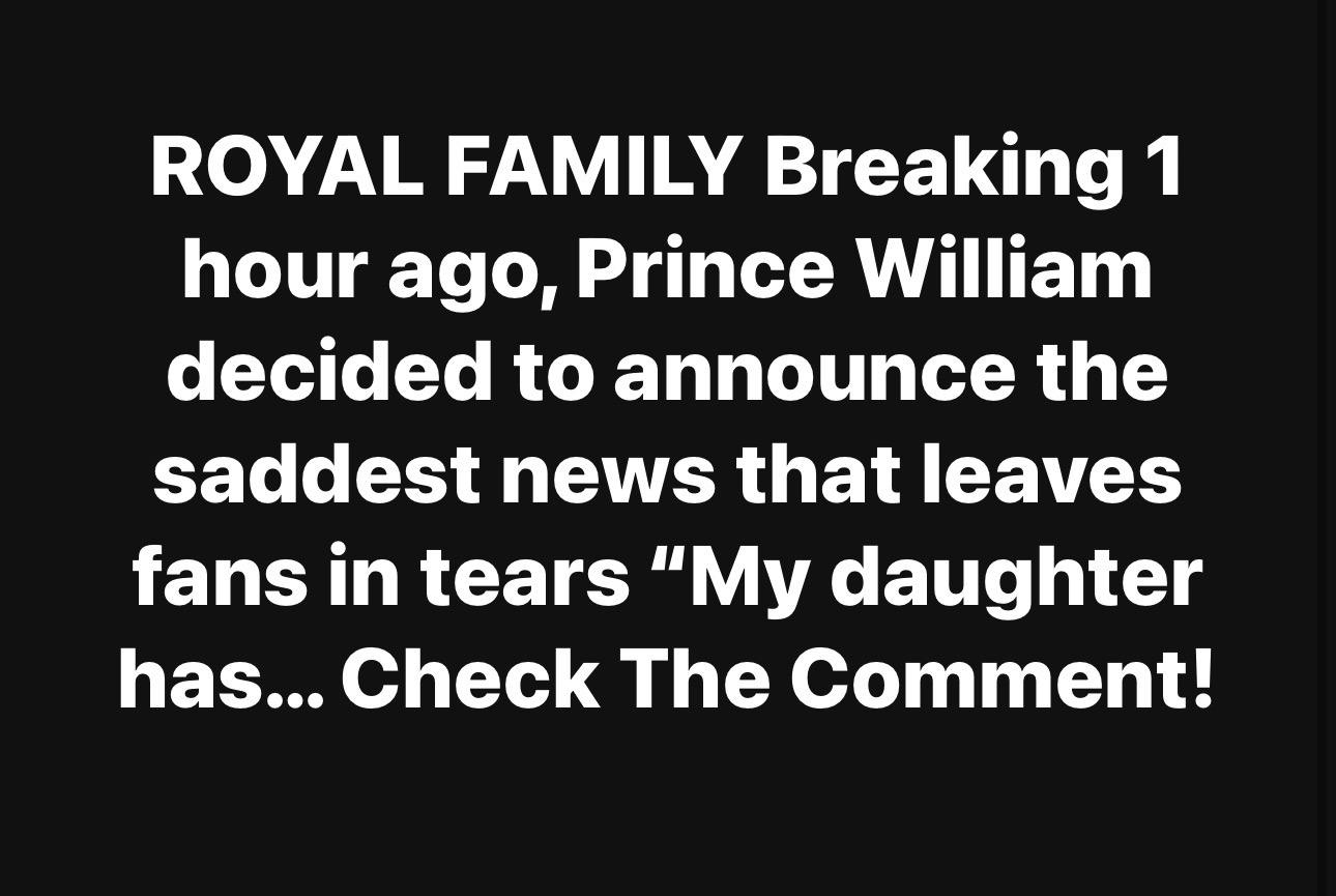 ROYAL FAMILY Breaking 1 hour ago, Prince William decided to announce the saddest news that leaves fans in tears “My daughter has… Check The Comment!