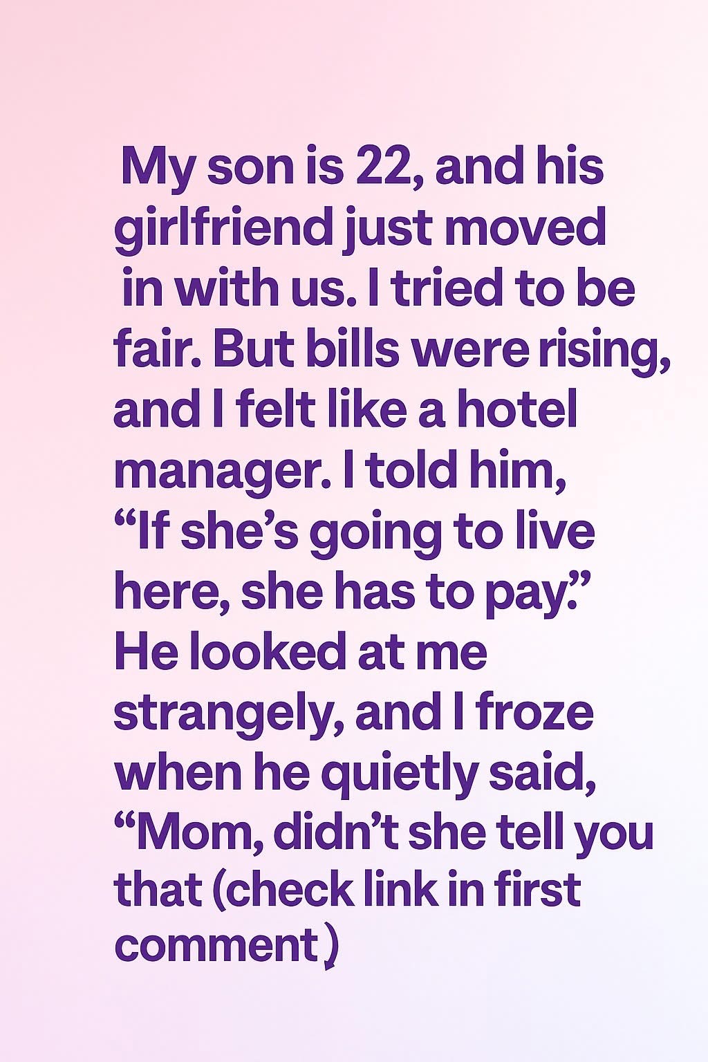 My son is 22, and his girlfriend just moved in with us. At first, I tried to be fair — I wanted to give them space to grow, to build their lives. But as the weeks went on, I noticed the bills rising and the quiet tension in the house. I started to feel more like a host than a parent. So one evening, I finally told him, “If she’s going to live here, she needs to contribute.”
