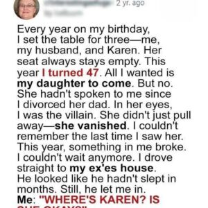 On my 47th birthday, I set the table for three. One seat remained empty, as it had for the past two years—quietly waiting. My daughter, Karen, hadn’t…