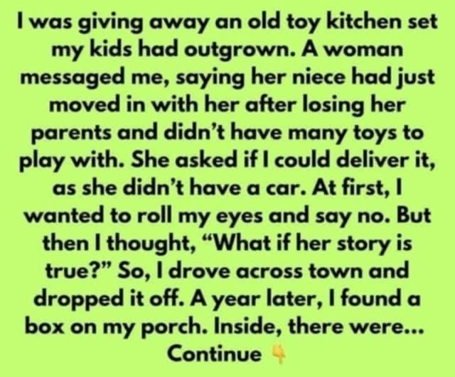 A year later, I found a box on my porch. Inside, there were photos of the little girl playing with the kitchen set,