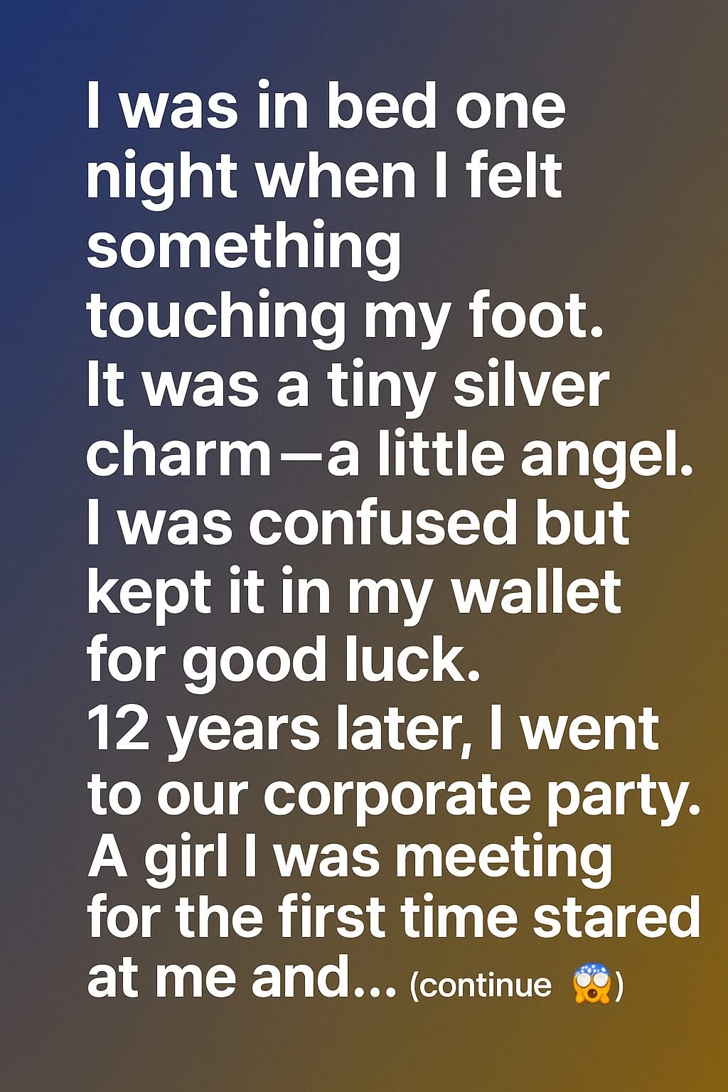 I was in bed one night when I felt something touching my foot. It was a tiny silver charm — a little angel. I was confused but decided to keep it, slipping it into my wallet for good luck. Over the years, that tiny charm became my quiet companion through college exams, job interviews, and even moments of heartbreak. Somehow, whenever I faced challenges, having it with me brought a strange sense of calm, like it was silently guiding me.
