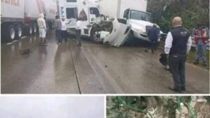 State of Mexico.- This Wednesday, November 20, a multiple collision occurred on the Mexico-Querétaro Highway , at kilometer 059+000 in Huehuetoca, State of Mexico . The accident involved a trailer that, after being unable to stop in time, collided with several vehicles. As a result, the vehicle ended up across the road, occupying all three north-south lanes of traffic, causing a partial closure of the highway.