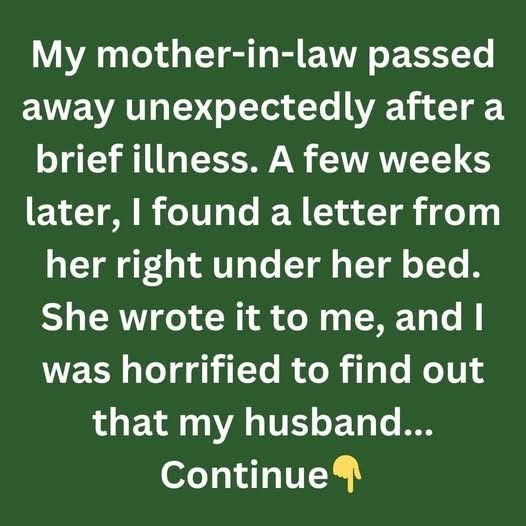My mother-in-law passed away unexpectedly after a brief illness. A few weeks later, I found a letter from her right under her bed.