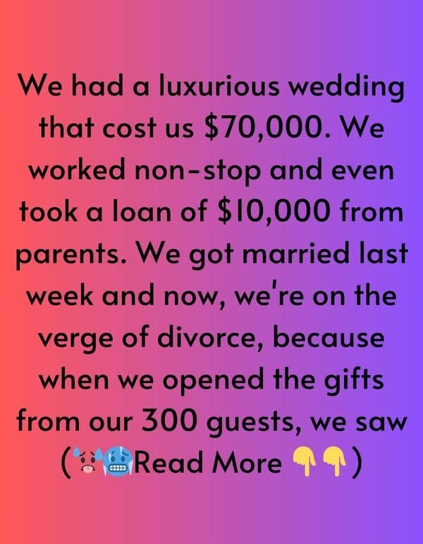 Our today’s heroes experienced this firsthand after they spent $70,000 on their wedding, only to be disheartened when the gifts they received amounted to just a small part of their expenses.