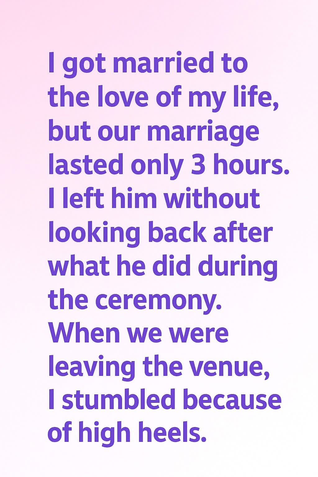 I got married to the love of my life, but our marriage lasted only 3 hours. I left him without looking back after what he did during the ceremony. When we were leaving the venue, I stumbled because of high heels. For months, I had imagined that moment — walking out hand-in-hand with my new…