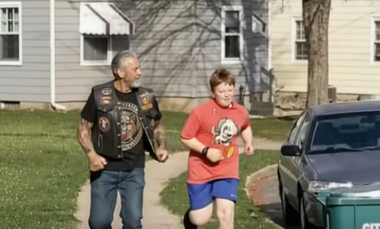 For three months, I watched from my kitchen window as a stranger in a leather vest jogged beside my thirteen-year-old son, Connor, every morning at exactly 6 AM. The man looked intimidating at first glance—tattoos, boots, and a worn biker vest—but the way he matched Connor’s pace so patiently made me believe he was simply a kind neighbor. I didn’t know who he was or why he cared, only that my son returned home calm, steady, and smiling. After months of feeling helpless because of my own health limitations, seeing Connor at peace again felt like a gift I could never repay.