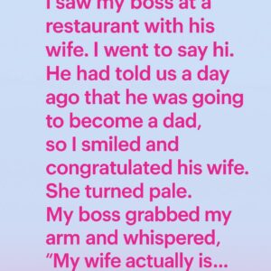 “I saw my boss at a restaurant with his wife. I went to say hi. He had told us a day ago that he was going to…