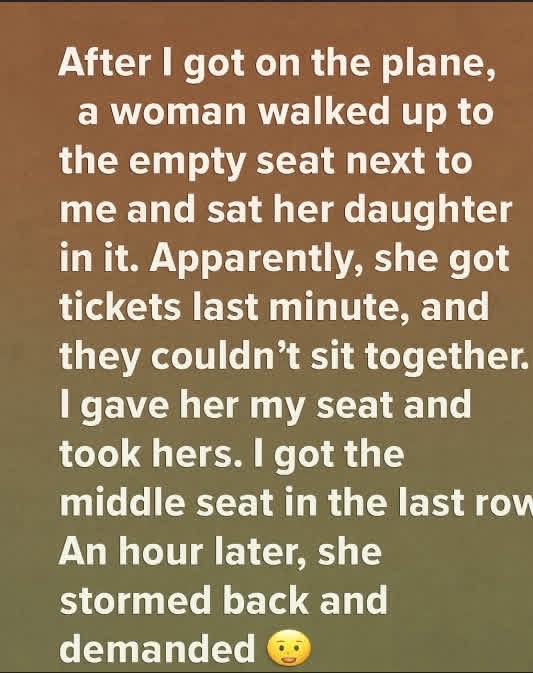 It happened on a crowded afternoon flight, one of those travel days where everything felt rushed and chaotic. A mother and her young daughter had managed to get last-minute tickets, but the airline couldn’t seat them together. The mother looked worried, glancing between their seats, unsure what to do. Without thinking twice, I offered her…