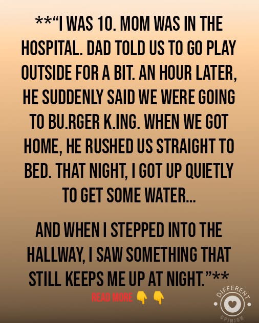 The first time that happened was when I was about 10, my dad ordered us kids outside to play while he made dinner. He came out of the house an hour later and announced we were going to Burger King. When we got back home, he sent us straight to bed.