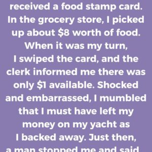 I was broke and had just received a food stamp card. In the grocery store, I picked up about $8 worth of food. When it was my…