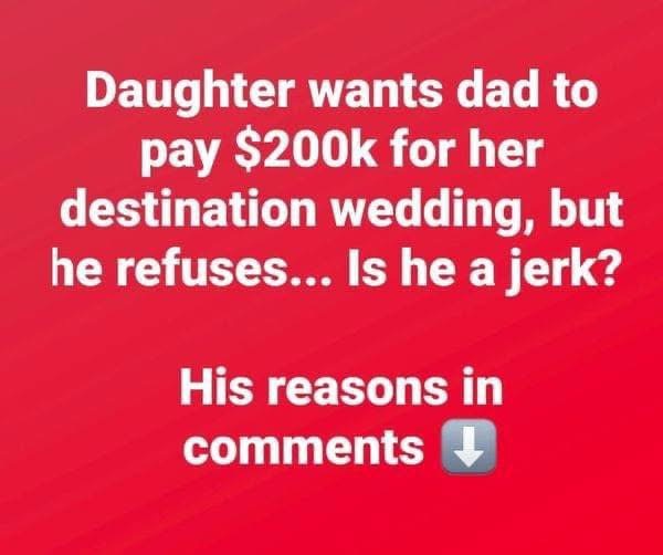 Daughter sparks debate after asking father to pay $200k for destination wedding