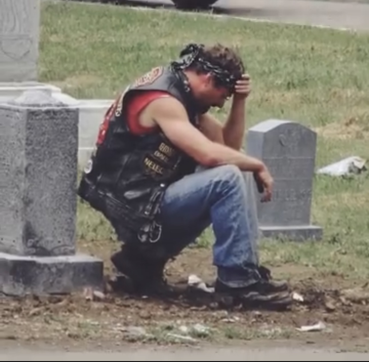People sometimes stare when they see us at the cemetery — the grieving husband and the biker sitting side by side.