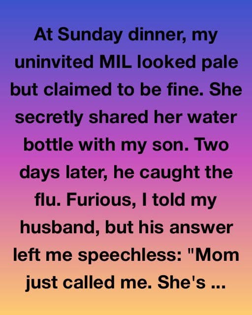 Dinner was ordinary until it wasn’t. In the middle of the chatter, I glanced over just in time to see her pass her water bottle to my son, Noah. He took two happy gulps before I could move. I felt heat rush to my face.